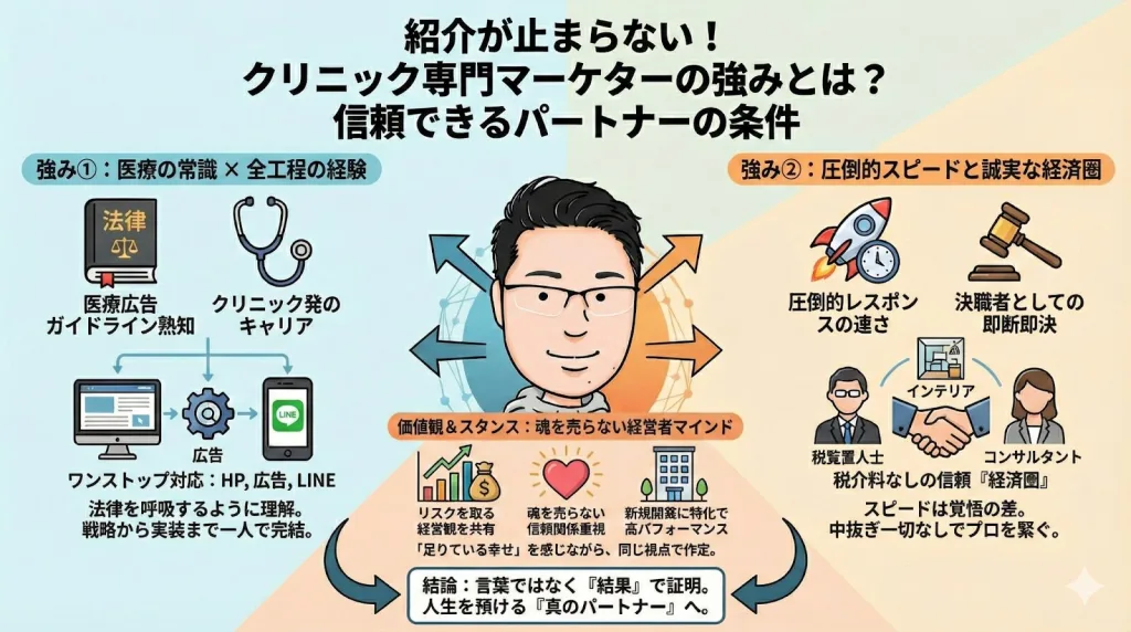なぜ、私のマーケティングは「紹介」が止まらないのか。そして、なぜ先生方は私を「単なるWeb業者」ではなく「人生を預けるパートナー」として選んでくださるのか。