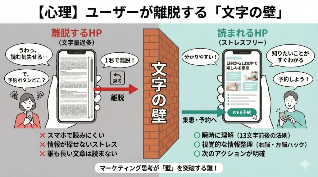 今の時代、誰も長い文章なんて読みません。読まれないHPは、存在しないのと同じ。来院に繋がらないHPに10万円払うのは、ドブに現金を捨てるのと同じことなんです。