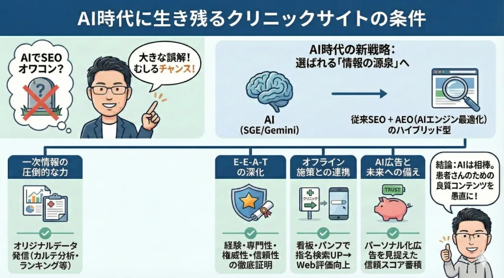 AI時代に勝ち残る条件は、そのクリニックにしか出せないオリジナルのデータを発信しているかどうかです。