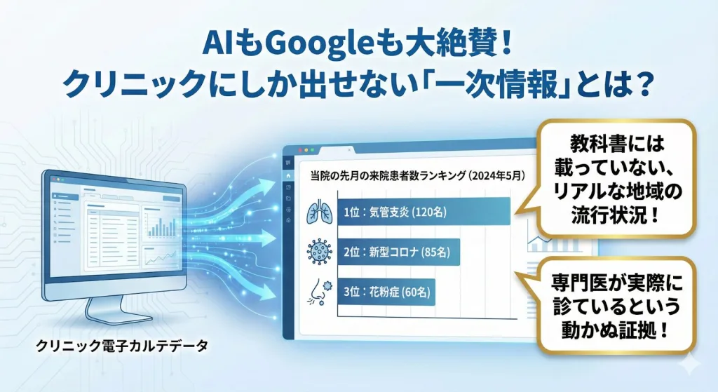 これは、そのクリニックにしか出せない世界に一つの一次情報です。GoogleやAIは、こうした現場の生データを何よりも高く評価します。