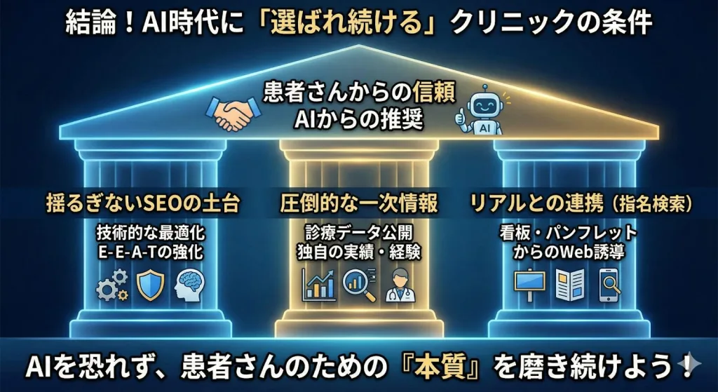 むしろ、これからの時代こそ、正しく構築されたクリニックサイトの価値は劇的に上がっていきます。