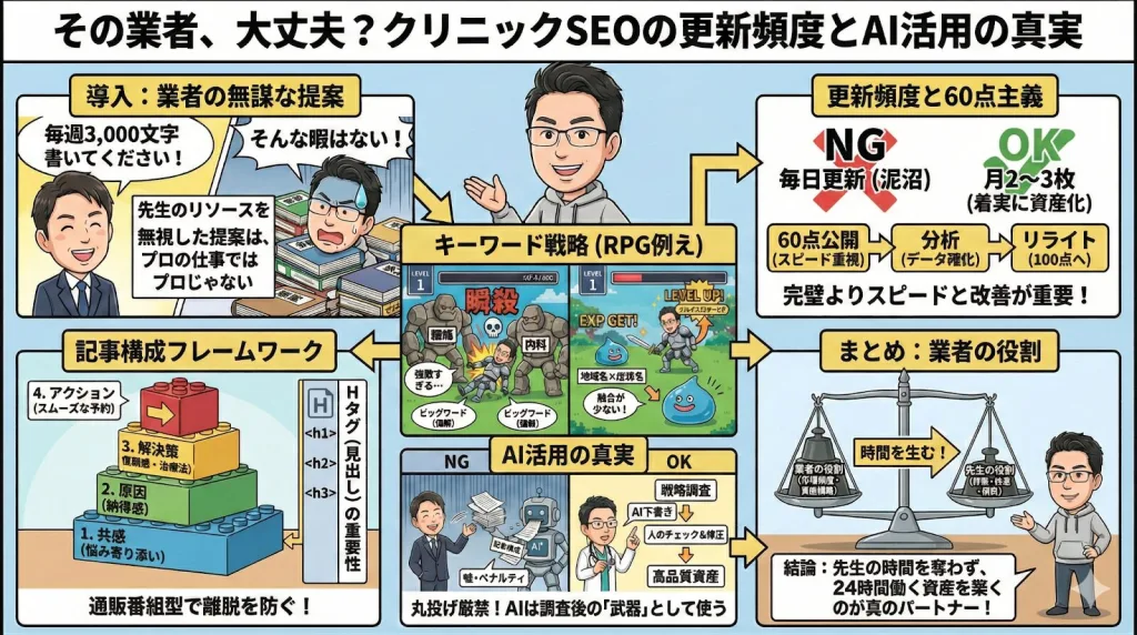 その業者、大丈夫?クリニックSEOの更新頻度とAI活用の真実