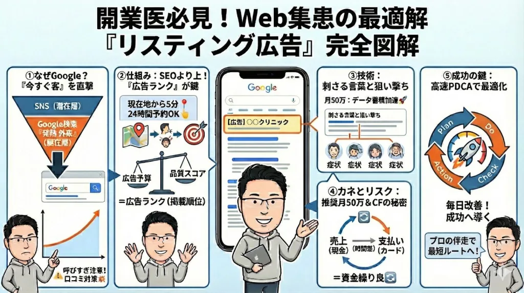 今回は、なぜリスティング広告がこれほどまでに強力なのか、その仕組みから具体的な運用戦略、そして多くの人が陥りがちな予算の考え方まで、実務に基づいた私の主張を余すことなくお伝えします。